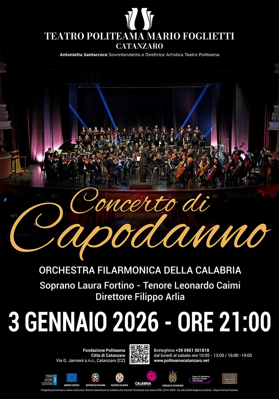 Il Teatro Politeama rilancia la tradizione del Concerto di Capodanno, un appuntamento ideale per accogliere il nuovo anno all’insegna della grande musica. Protagonista l’Orchestra Filarmonica della Calabria, che rinnova e consolida la propria collaborazione con il teatro pubblico di Catanzaro. Una formazione riconosciuta a livello nazionale e internazionale per la sua versatilità e il vasto repertorio. Il programma del concerto avrà al centro una lunga carrellata di arie e passi corali dal repertorio operistico più amato senza rinunciare ad alcuni dei più famosi valzer di Strauss. Un’esperienza coinvolgente ed emozionante, che arriva dritto al cuore e all’anima di ogni spettatore, per dare il benvenuto al 2026 all’insegna della condivisione e della gioia.